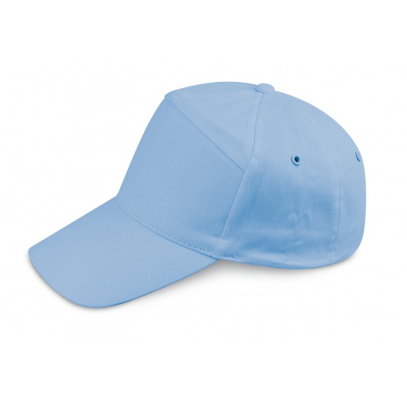 Cappellino 7 pannelli, 100% cotone, visiera rigida precurvata con cucitura di rinforzo.
